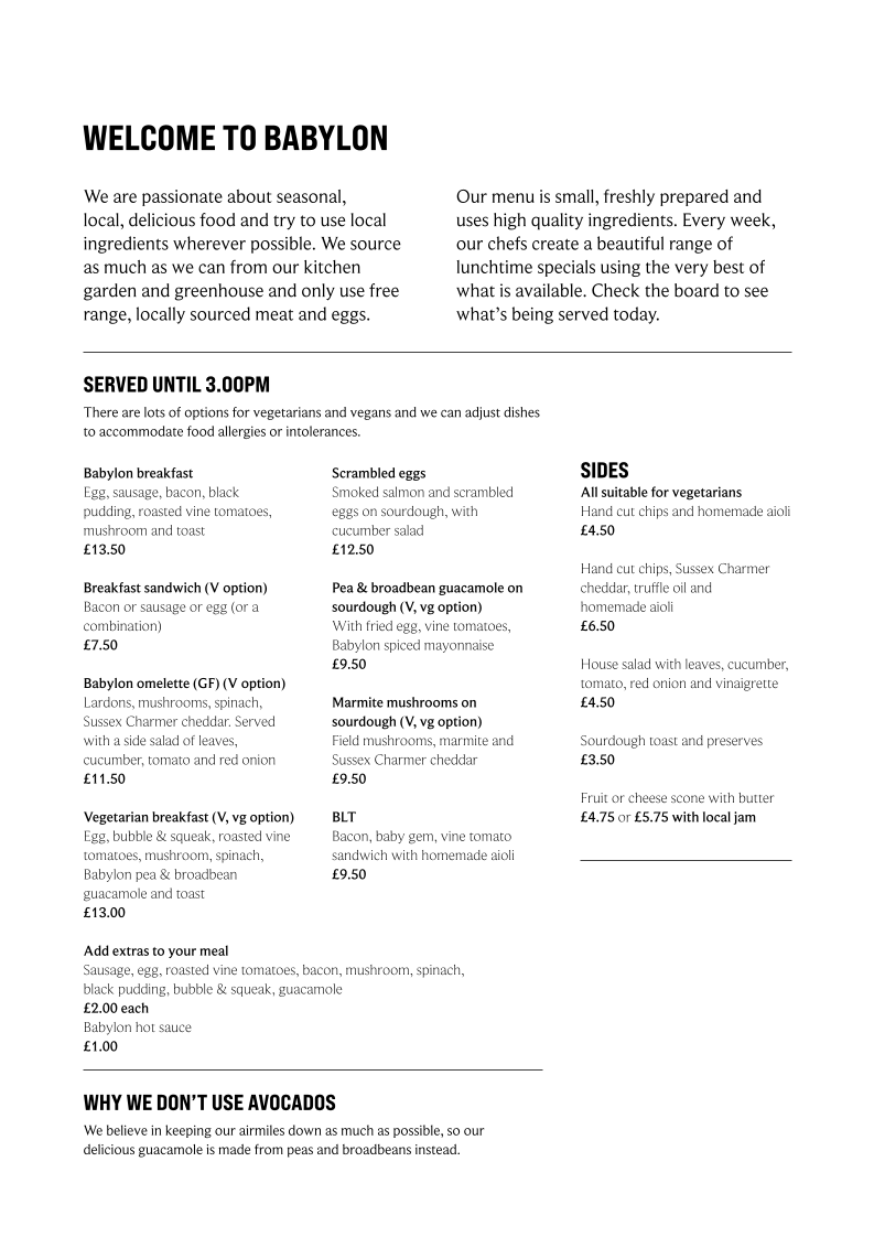 Nestled in the serene countryside of Duddleswell, Uckfield, Babylon - The Kitchen offers an inviting escape for food enthusiasts. The cafe is renowned for its fresh, flavor-packed dishes that cater to diverse dietary preferences. Diners rave about the exquisite English breakfast, praised for its perfectly cooked black pudding and generous portions.